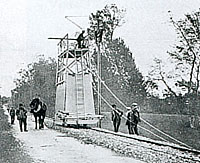 Les travaux débutent en même temps sur toutes les lignes à l'aide de locomotives à vapeur. La première section Limoges La Tuilière - Saint-junien est ouverte le 17 août 1911, les autres vont suivre jusqu'au 1er juin 1913. Ci-contre : installation de la caténaire 10 kV à l'aide d'un wagon échelle à traction hippomobile.
